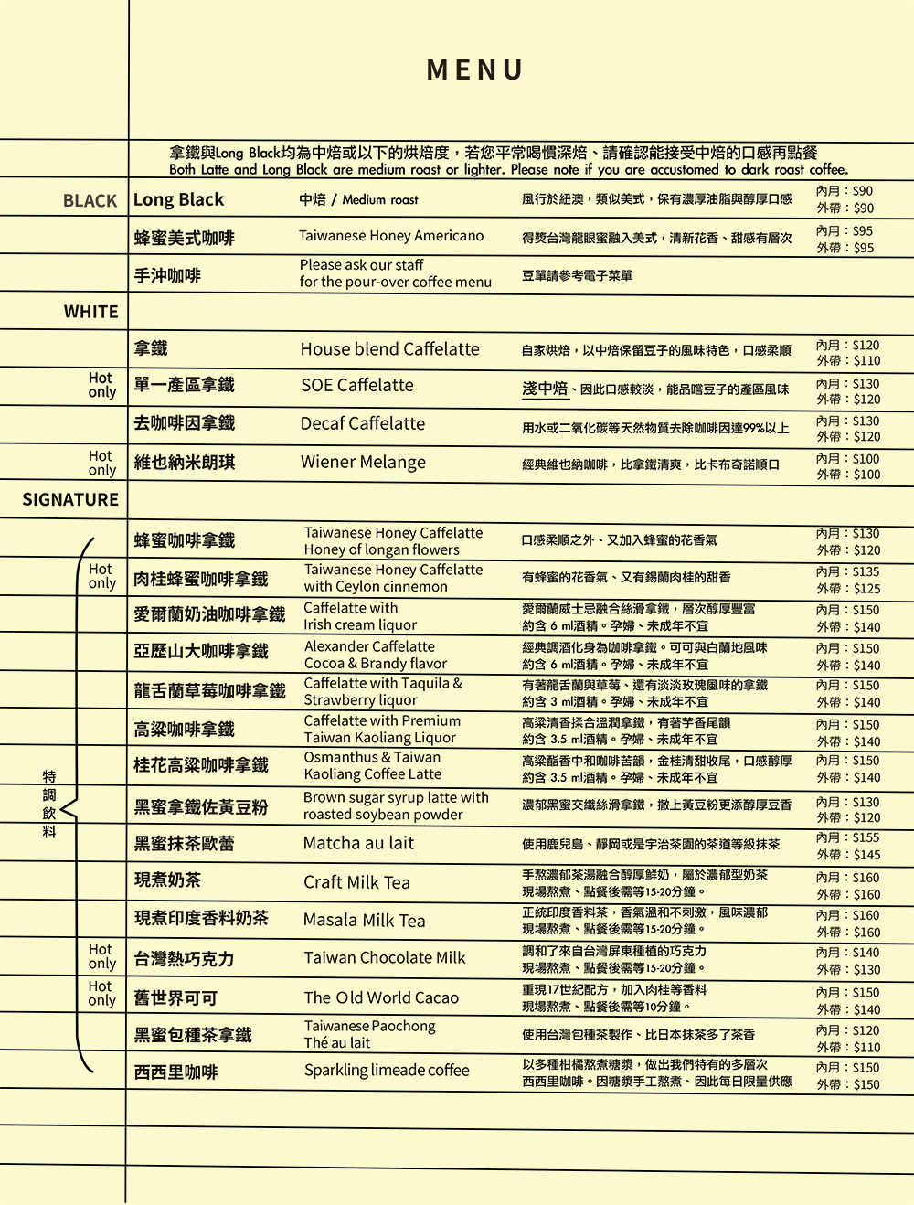 豆單經常變動,請參考店內電子菜單