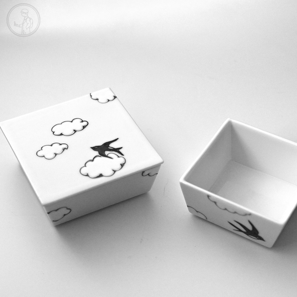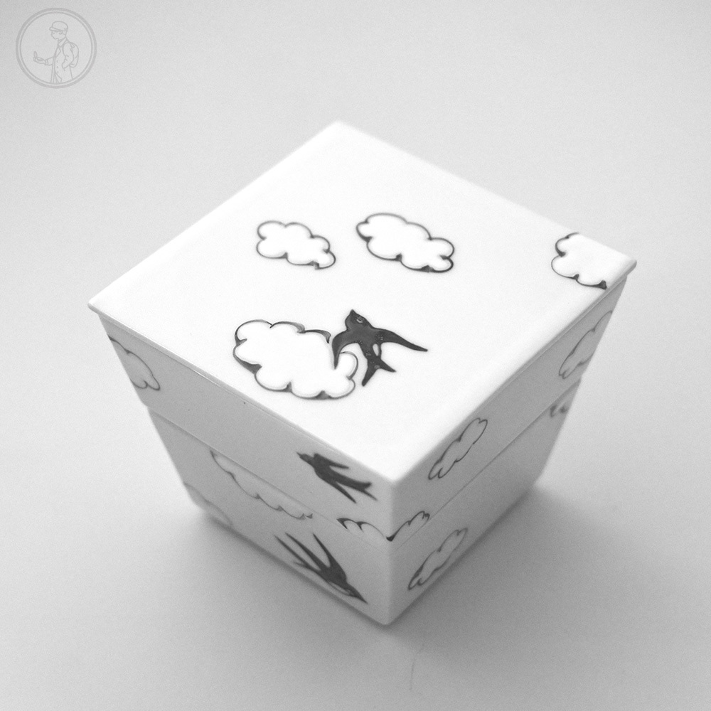 手繪的雲燕圖案每筆都充滿生命力,盤緣為可愛且特殊的雲朵狀邊緣,可做為食器或是置物盤使用。