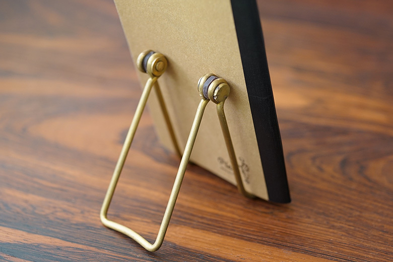 以黃銅材質製作的多角度支架,可放置書本、盤、平版等電腦用品,調整至方便使用的角度。