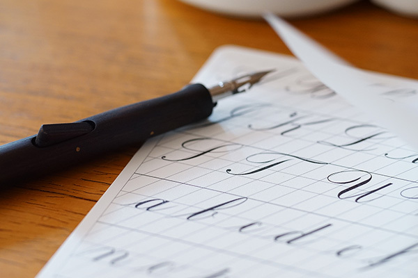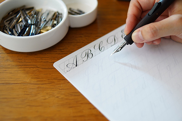 透過實例的方式,從挑選沾水筆的各項工具-筆尖、筆桿、墨水、紙張,了解並進而開始練習英文書法吧!
