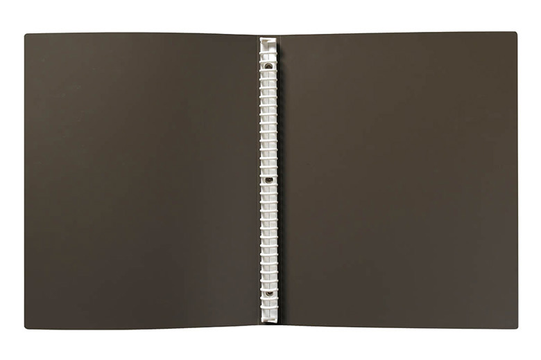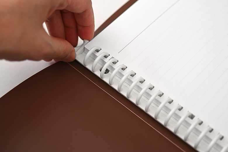 外觀優雅且具質感,三色搭配真田紐:黑綠、栗色、鈍色,內側的孔洞有30個、A4尺寸。