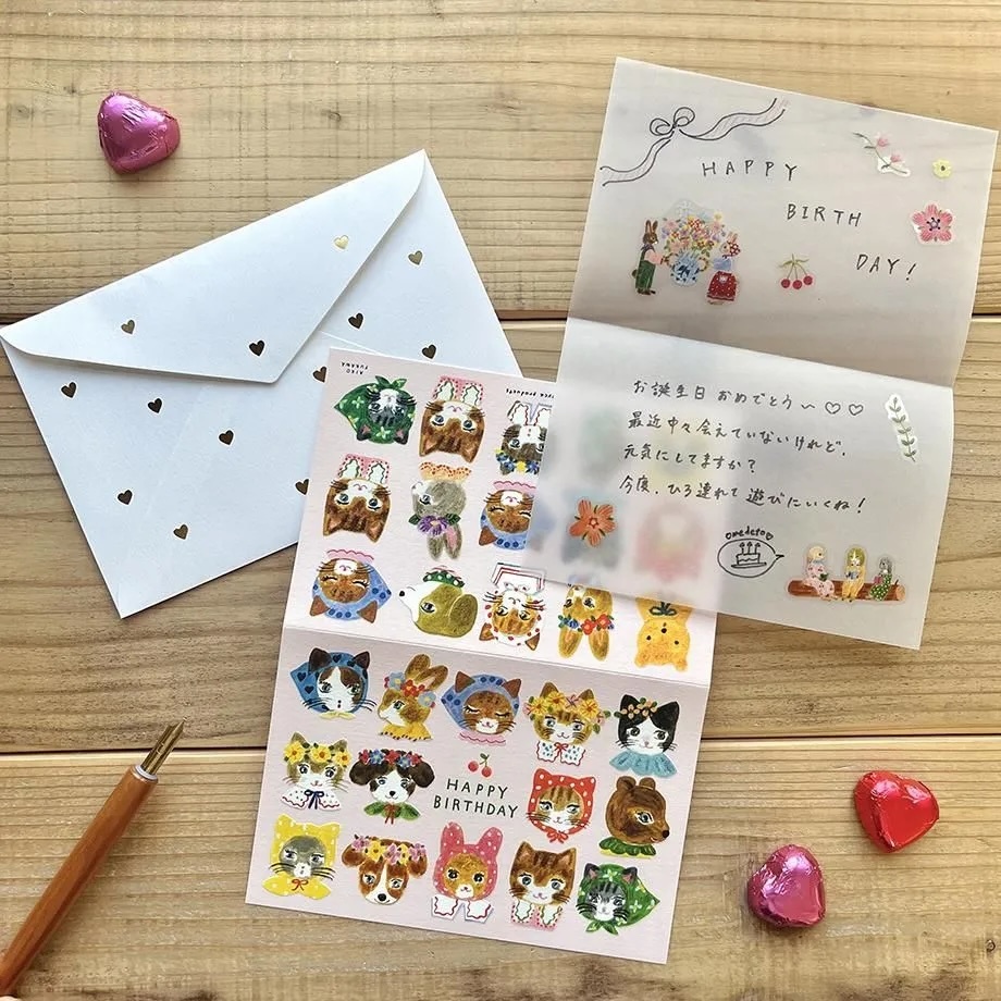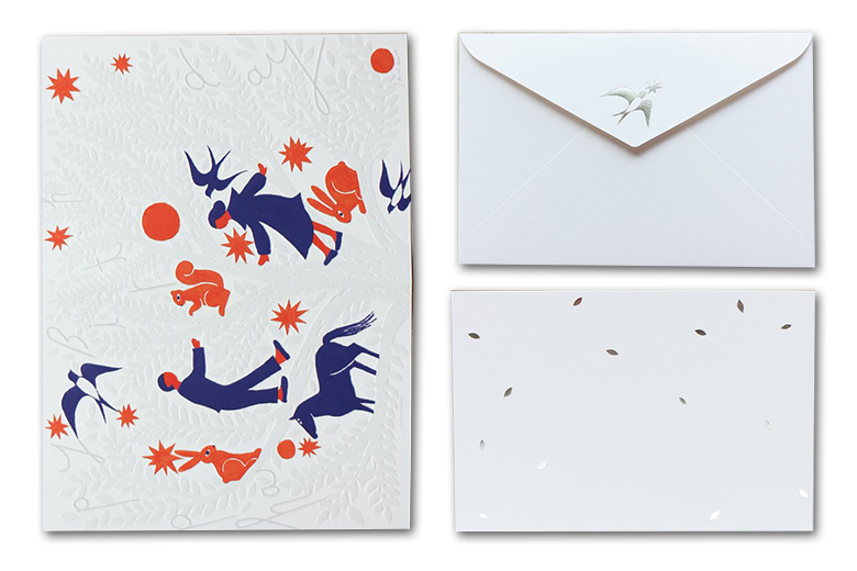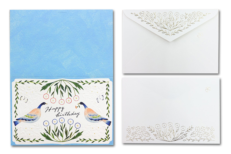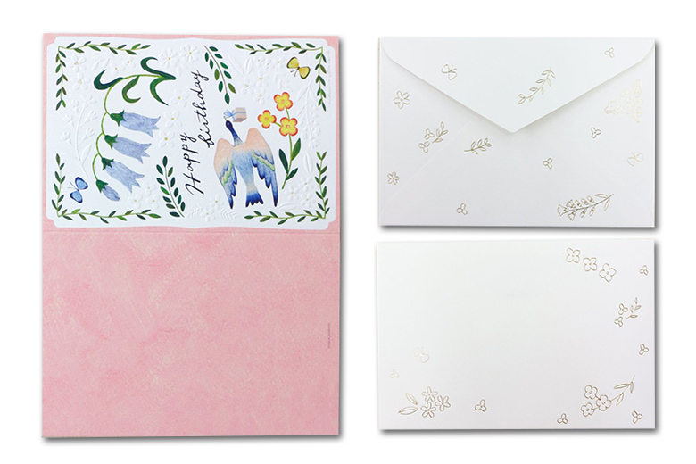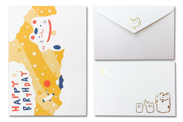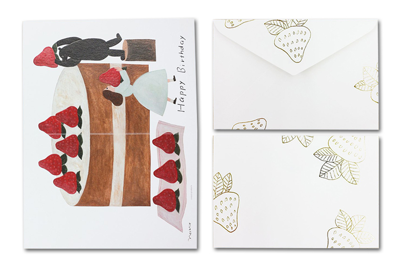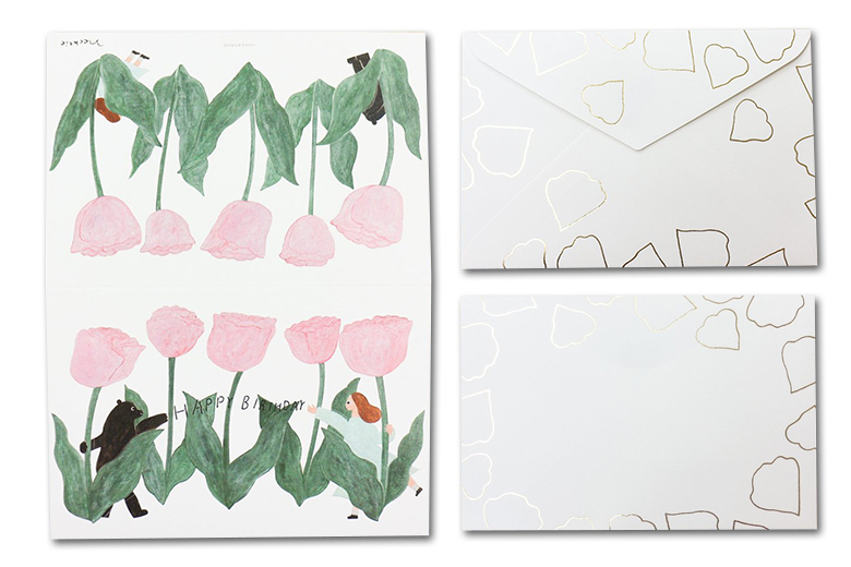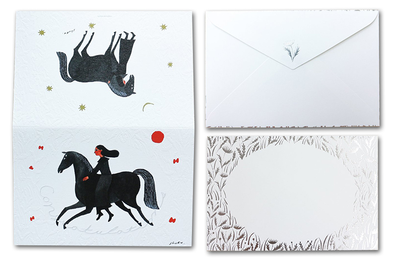 表現社與日本知名插畫家們推出的卡片,信封採用精緻箔壓,信紙本身則是有凹凸壓紋處理,紙質厚實有手感。