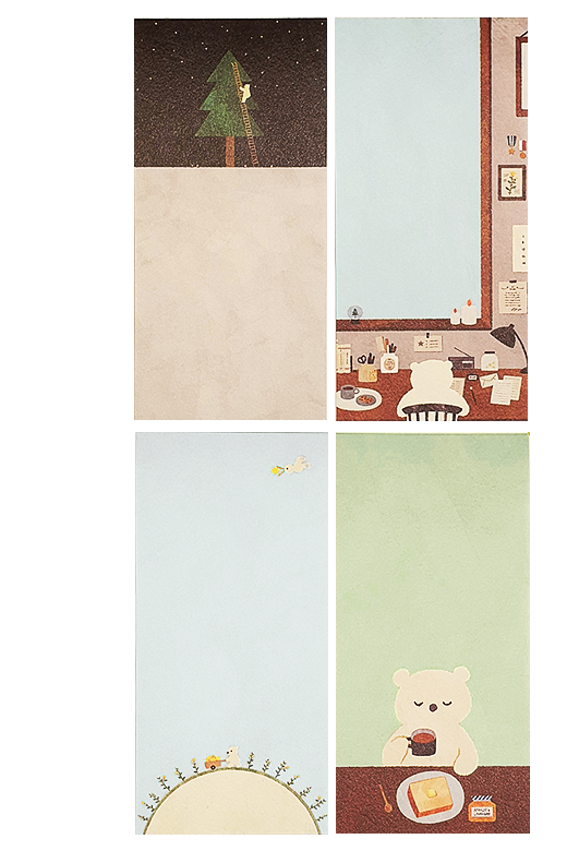 紙張具有特殊的溫暖感,適合生活中使用,一本內有四種圖案各5張,共20張。