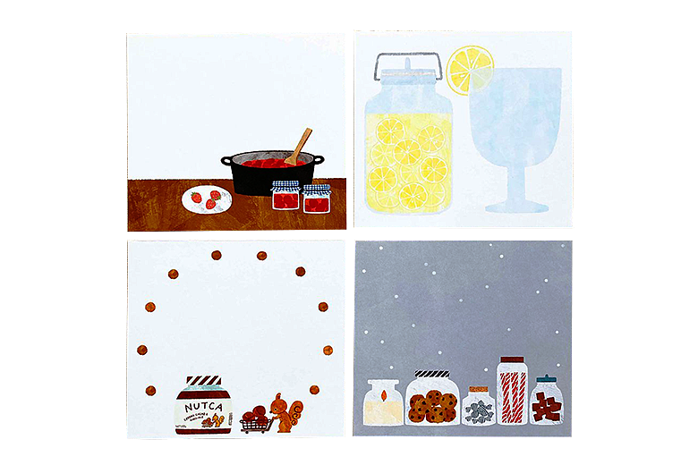 表現社所推出的日本插畫家系列便條紙,採用滑順的紙張,適合使用原子筆書寫。透明封面的文字圖案印刷微微突起,便條紙內頁共120張,便條紙的印刷色彩豔麗、飽和,一本內有四種圖案各30張。