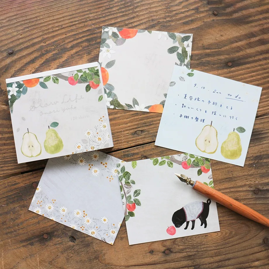 表現社所推出的日本插畫家系列便條紙,採用滑順的紙張,適合使用原子筆書寫。透明封面的文字圖案印刷微微突起,便條紙內頁共120張,便條紙的印刷色彩豔麗、飽和,一本內有四種圖案各30張。