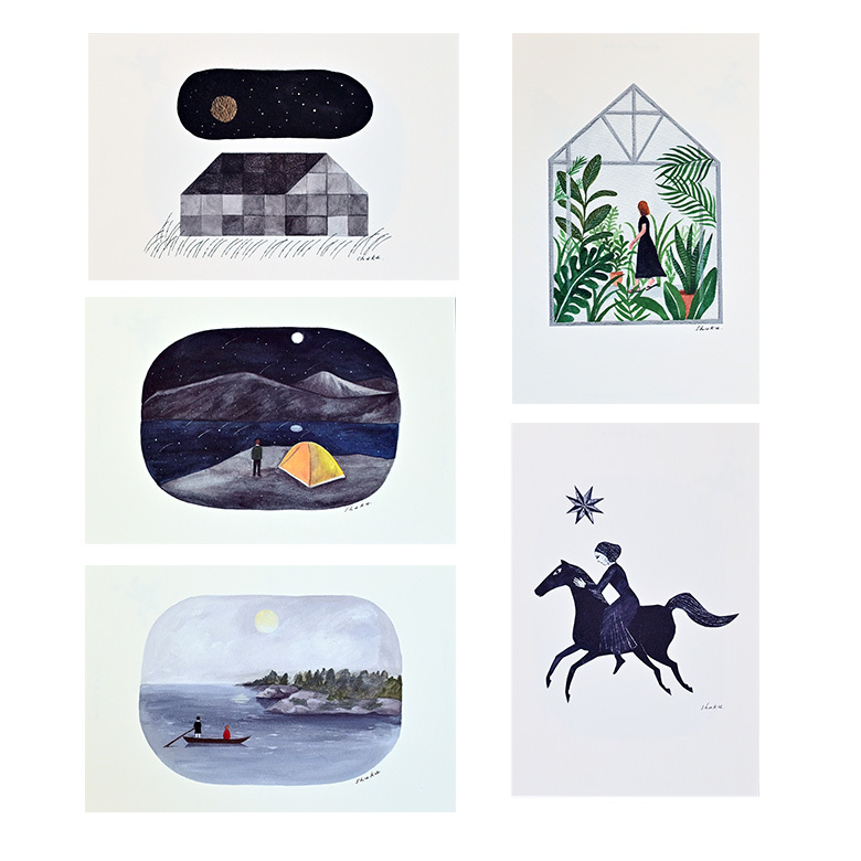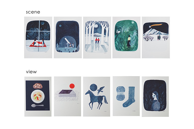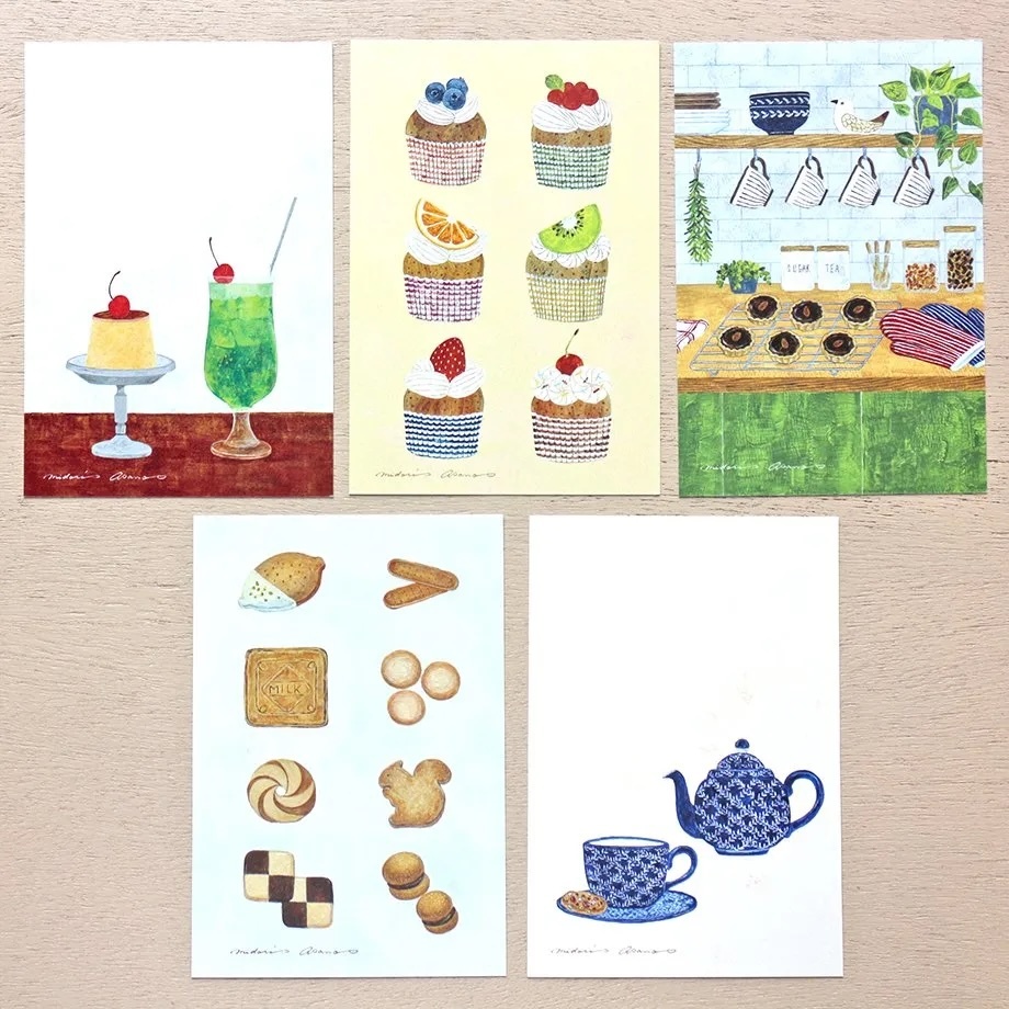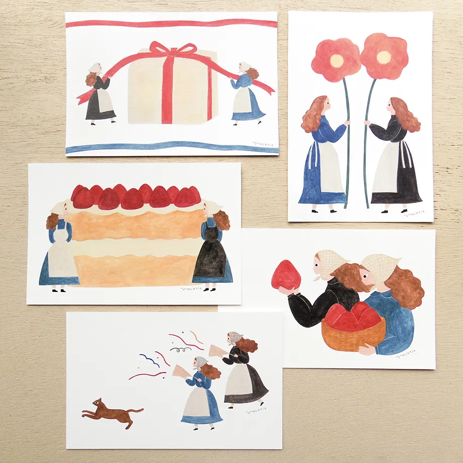 每組有五種圖案各二張,一組有10張,背面亦印有圖案,可一張張撕下寄送朋友或是當作書籤。