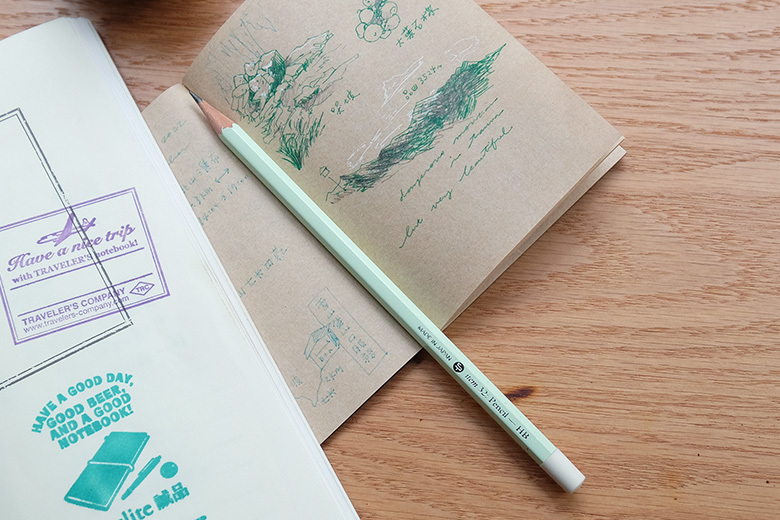 橡皮擦採用類似木工榫接著在筆桿上,擦起來的感覺與一般鉛筆所附的橡皮擦完全不同,效果幾乎與單獨整塊的橡皮擦無異。