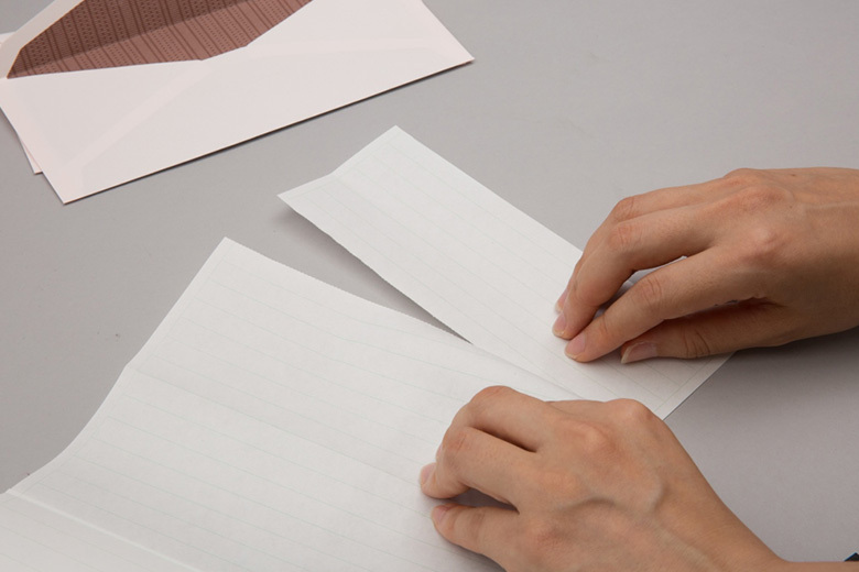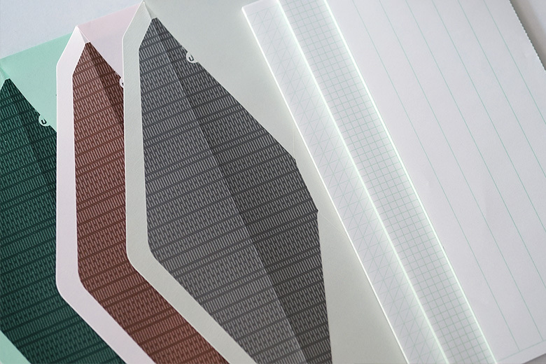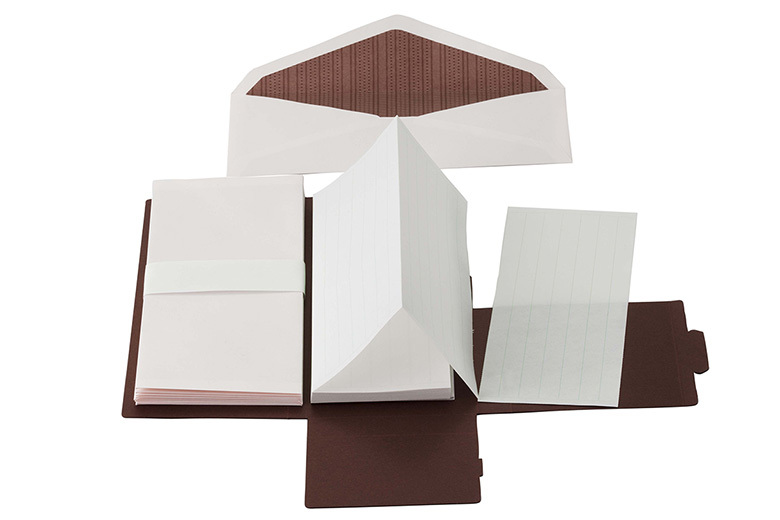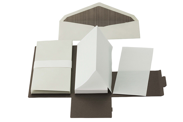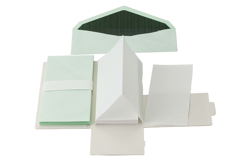 與位於日本橋、擁有兩百多年歷史的和紙老鋪-「榛原」-合作推出這款蛇腹式摺疊設計的便箋信紙組。