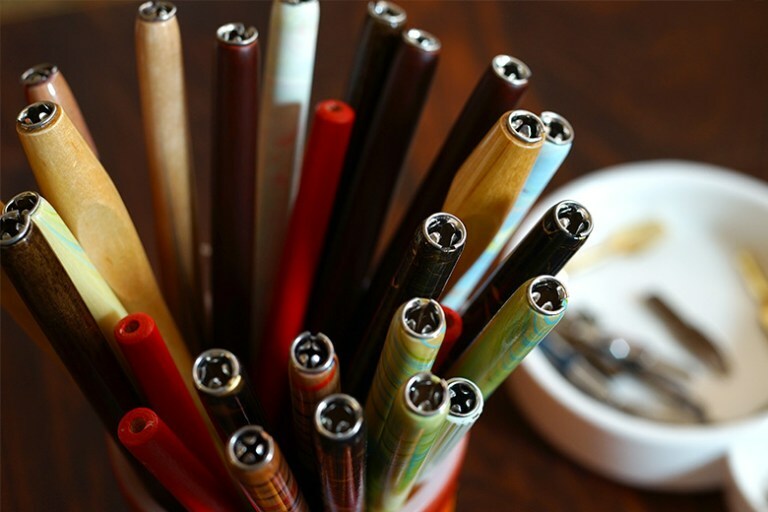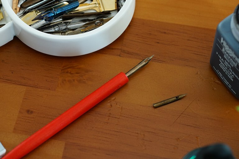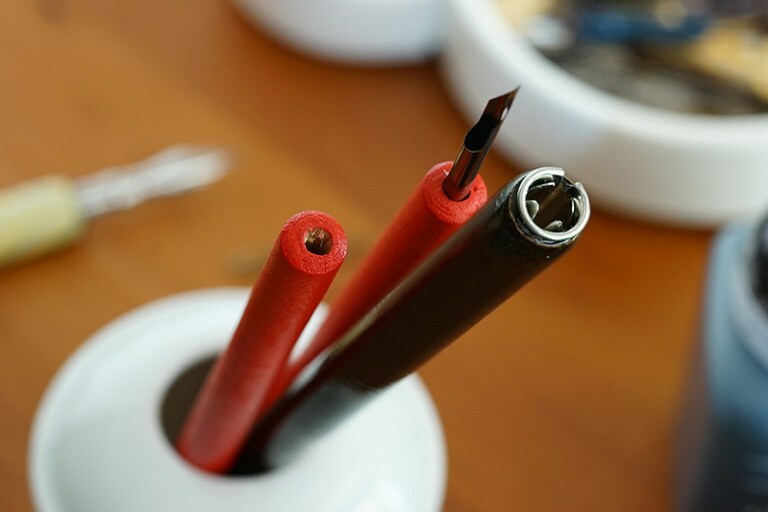金屬夾片的構造可適用於大多數的沾水筆尖,大理石紋路款每支紋路皆不同。