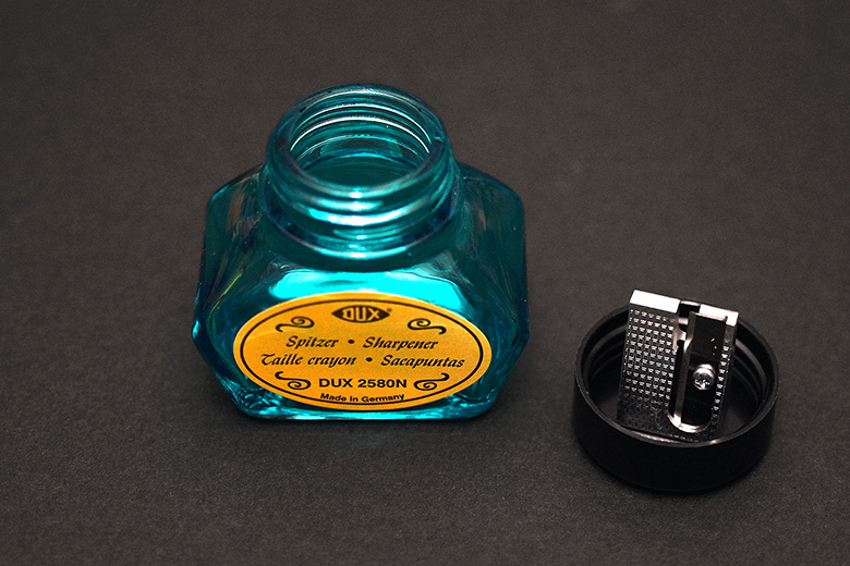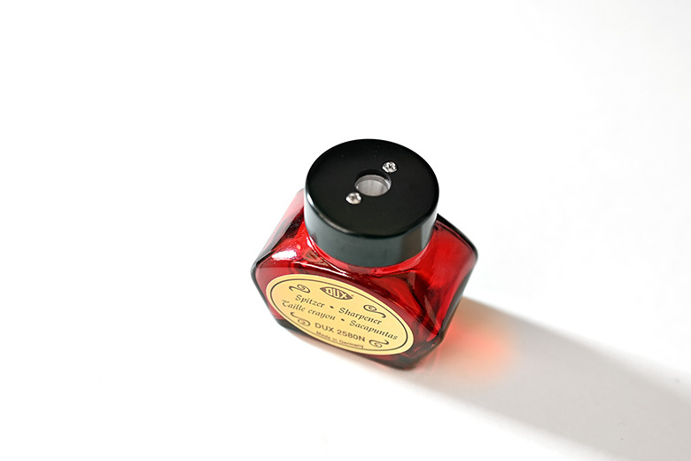仿照墨水瓶設計、幾可亂真的削筆器,內部削筆器為金屬製,清潔內部時可將瓶蓋轉開,德國製造。