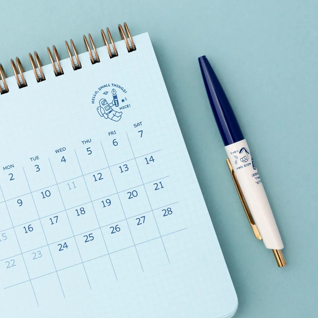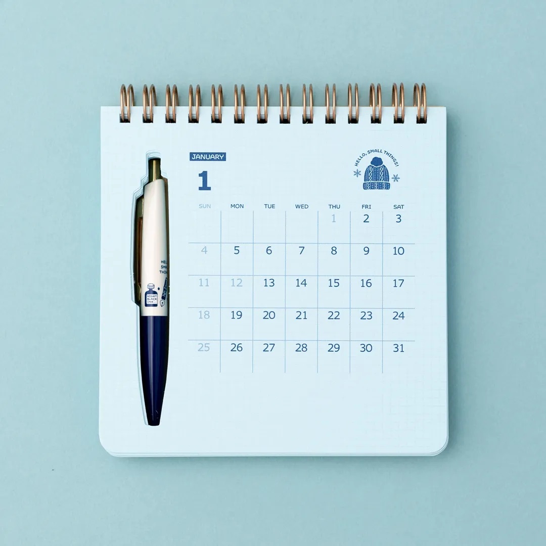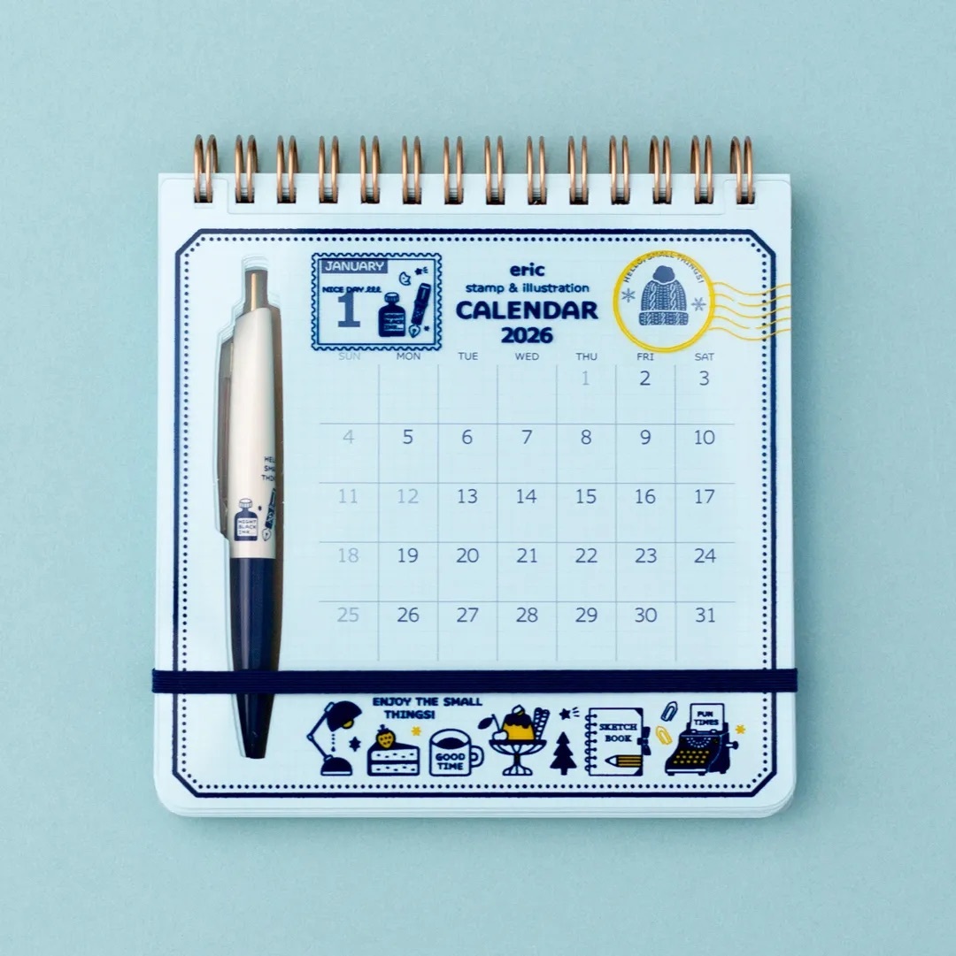 此外,封面的保護套可拆卸,搭配日曆本體使用時,設計感更顯可愛。隨附的插畫可愛原子筆,迷你的尺寸但好握好寫,用完後還能直接收納在日曆指定的位置,不必擔心弄丟。這是一本可以帶在身邊的月曆,讓 2026 年充滿更多靈感與創意吧!