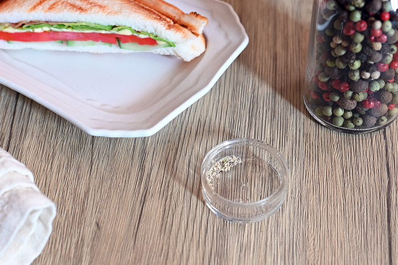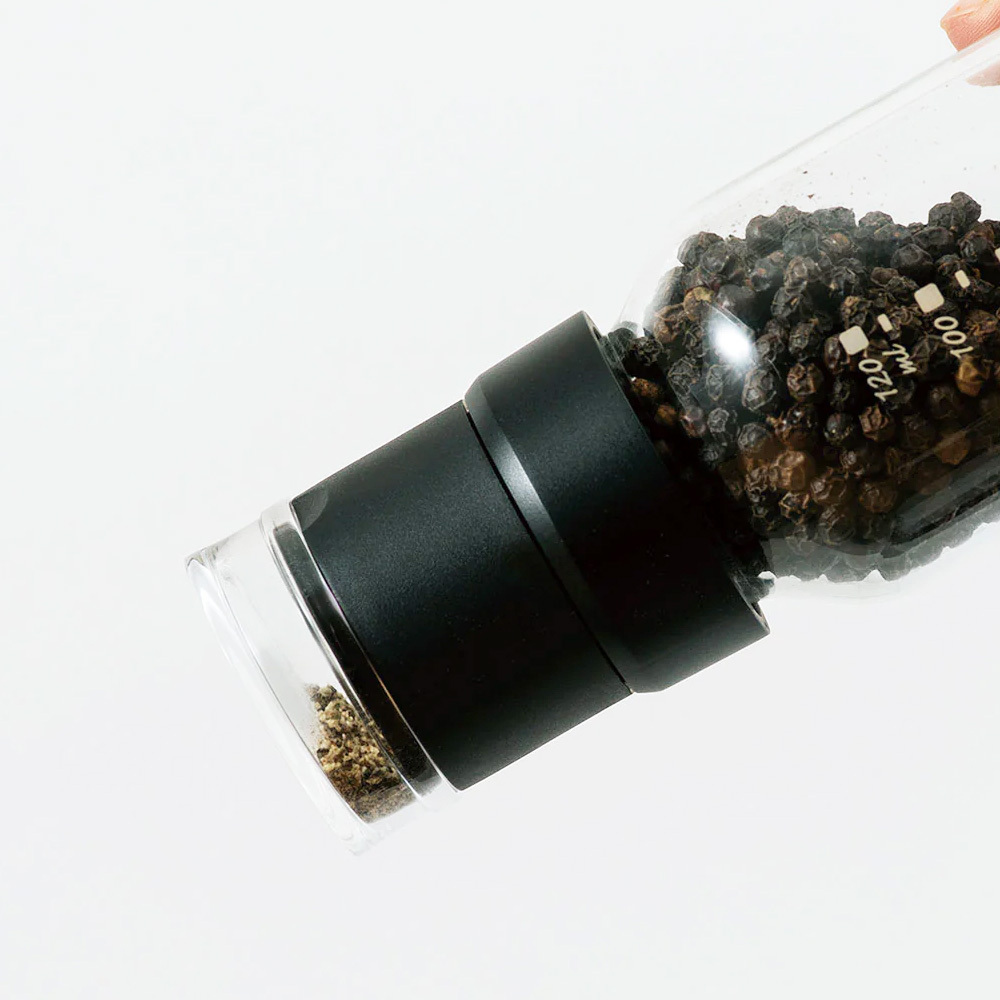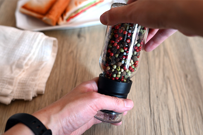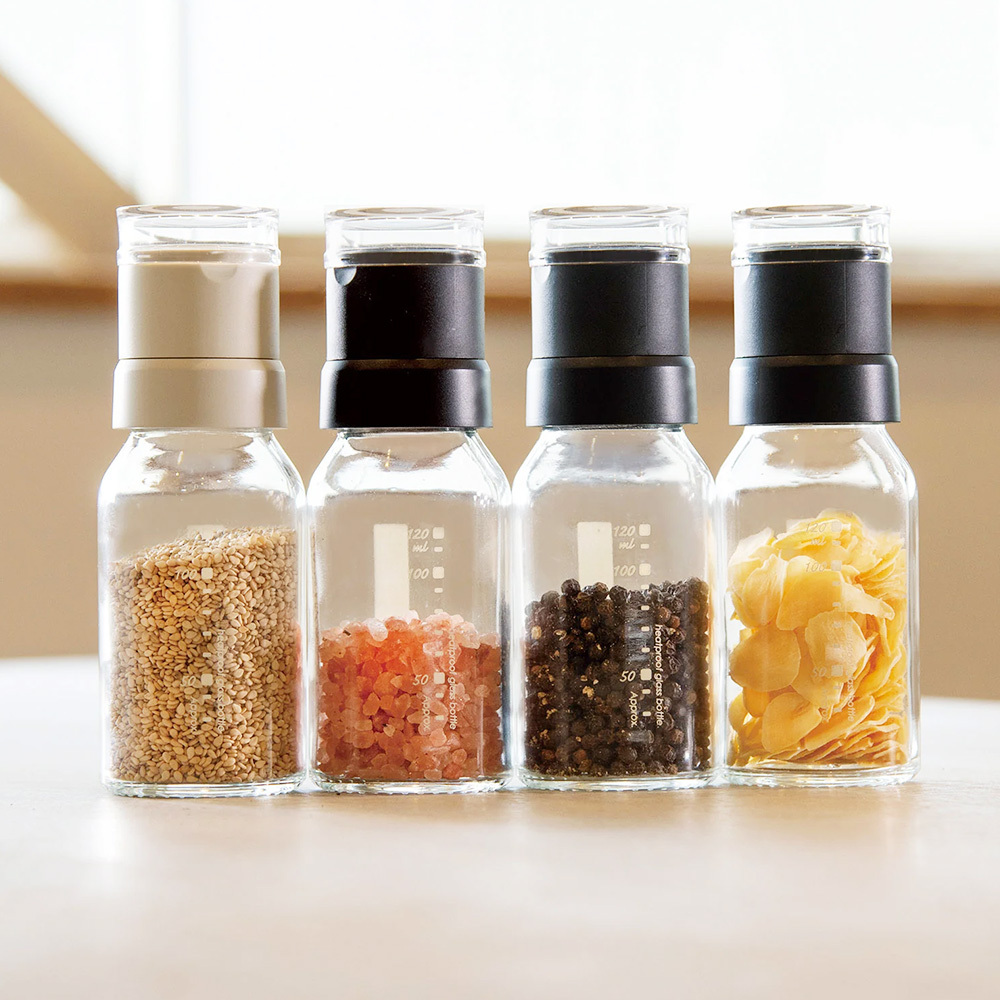 先將磨好的香辛料保存在最上方的透明蓋中,烹飪時可以了解使用了多少調味料,也可免受潮。