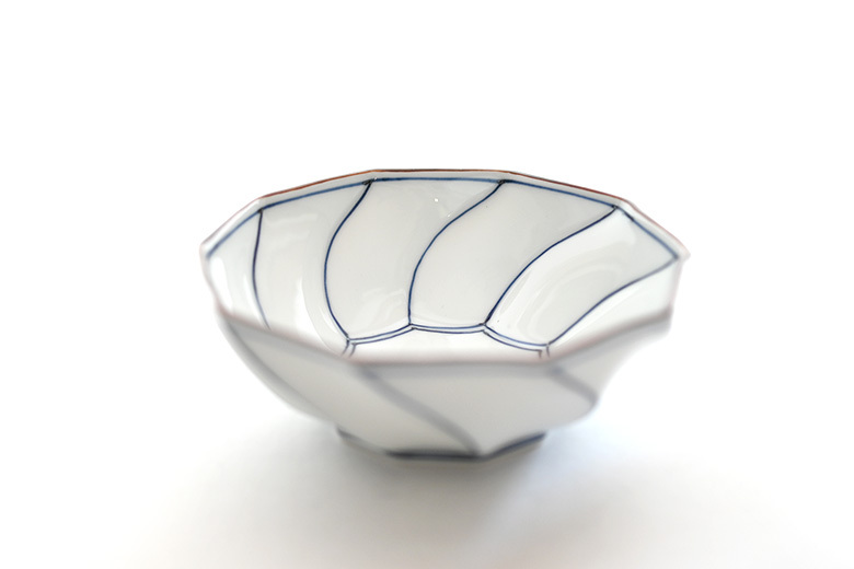 透亮溫潤的白磁帶有點乳白色,沿線繪製巧妙角度的銹棕色線條,深度適中的器皿介於碗盤之間,用途廣泛。