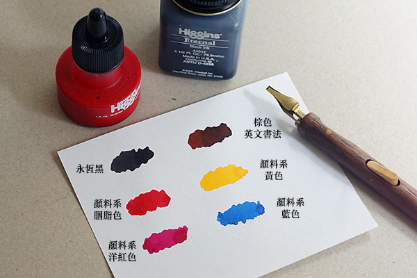 Higgins從19世紀開始就已生產墨水、目前是美國最具代表性的專業墨水廠牌、同時在英文書法圈中也幾乎是無人不曉的知名廠牌。
