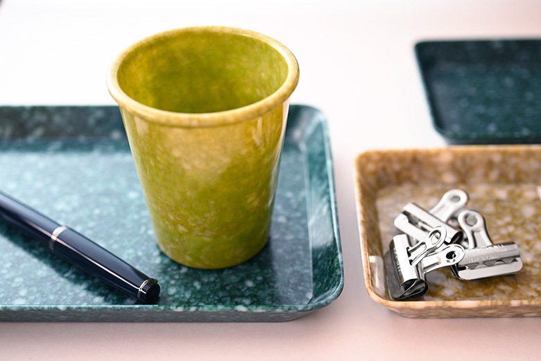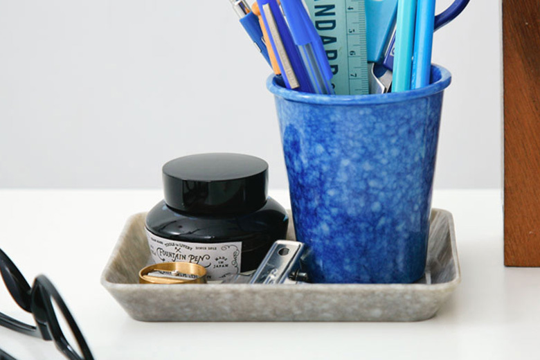 樸實的大理石花紋搭配厚實的美耐皿材質,筆放在裡面也較不會傾倒,亦可做為花器底盤使用。
