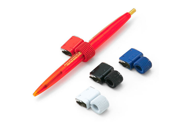以方便夾為機構,再加上伸縮性的金屬環,將筆附在本子上隨身攜帶。或是用方便筆夾夾住散紙,依據習慣可以有不同使用方式。