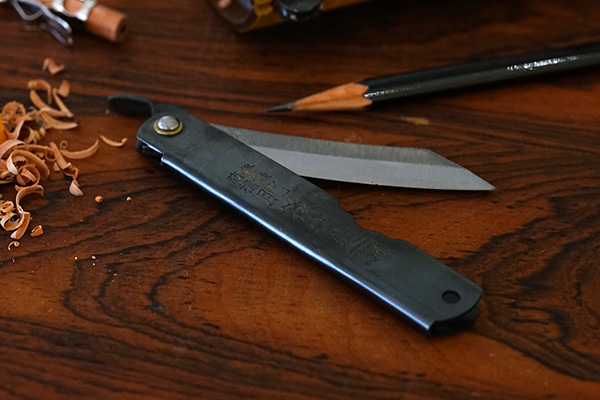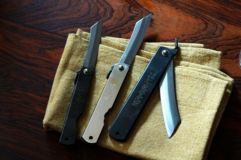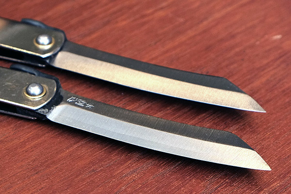 夾層鋼指的是把SK鋼這種具有相當硬度的炭素工具鋼夾在兩片鐵材中間再鍛造而成,共有三種尺寸,二色刀柄。