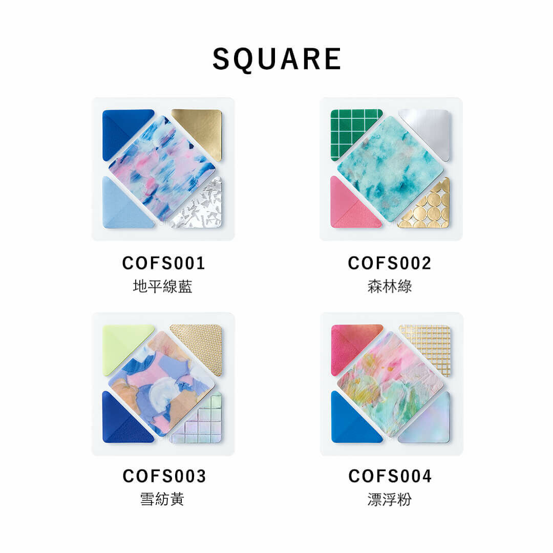 彩妝盤般的繽紛亮麗圖案變成了單張透明貼紙,多種幾何圖形使用廣泛!