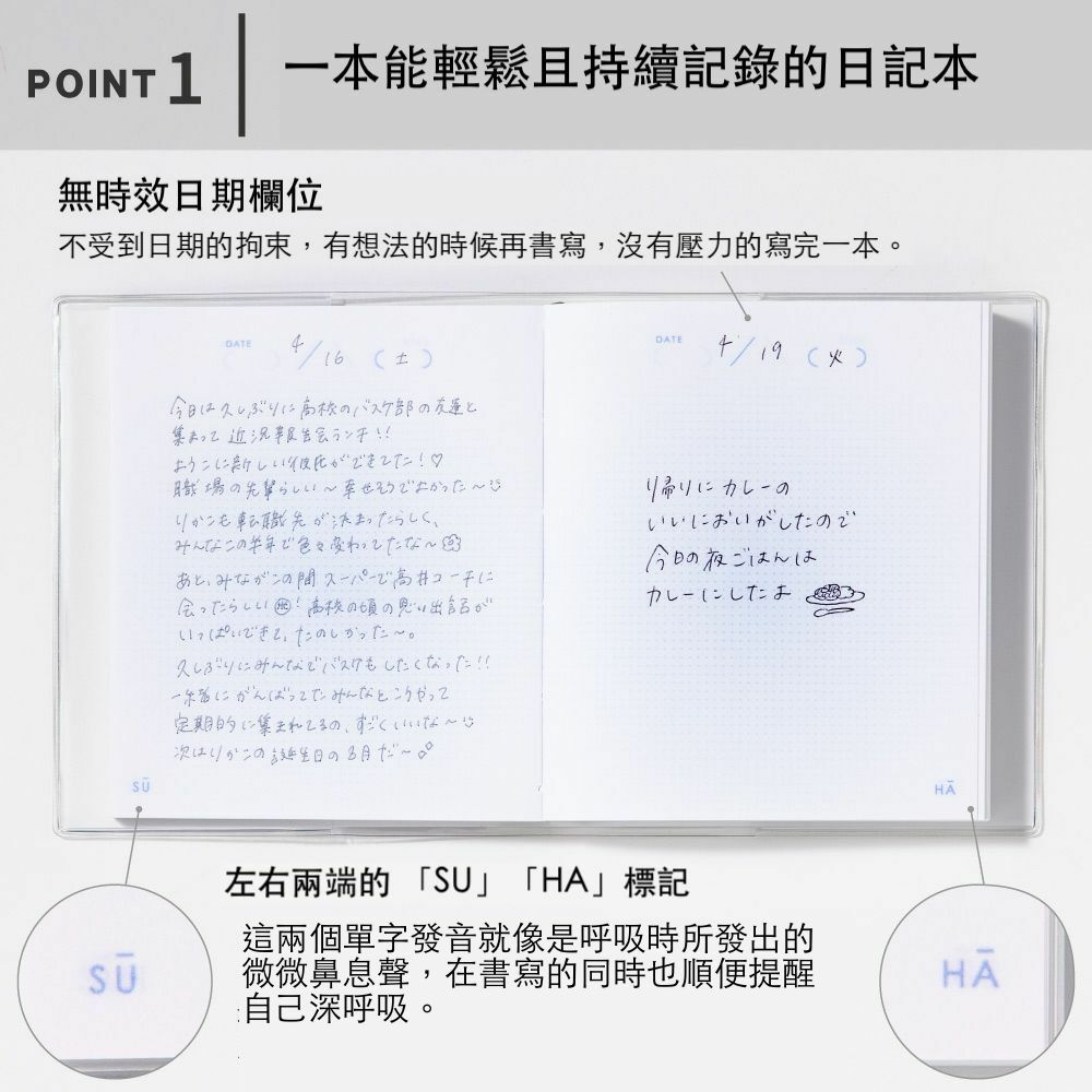 手掌大小的精巧尺寸,蘊含了對日常生活的貼心設計,沒有日期時效限制,可隨身攜帶,讓書寫手帳變得無負擔,如呼吸一樣輕鬆自然。