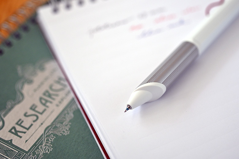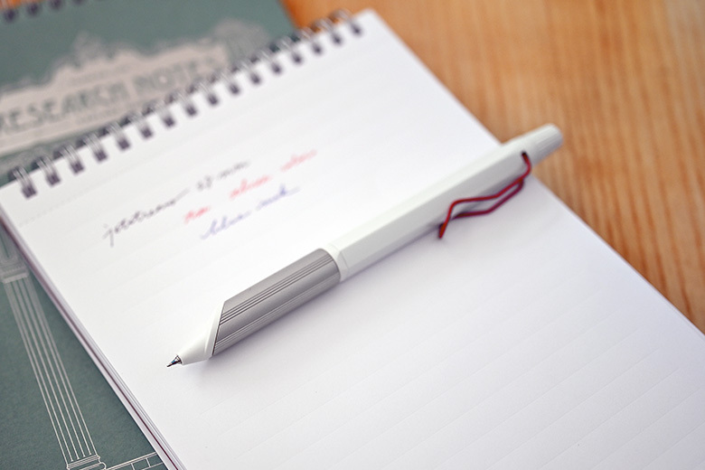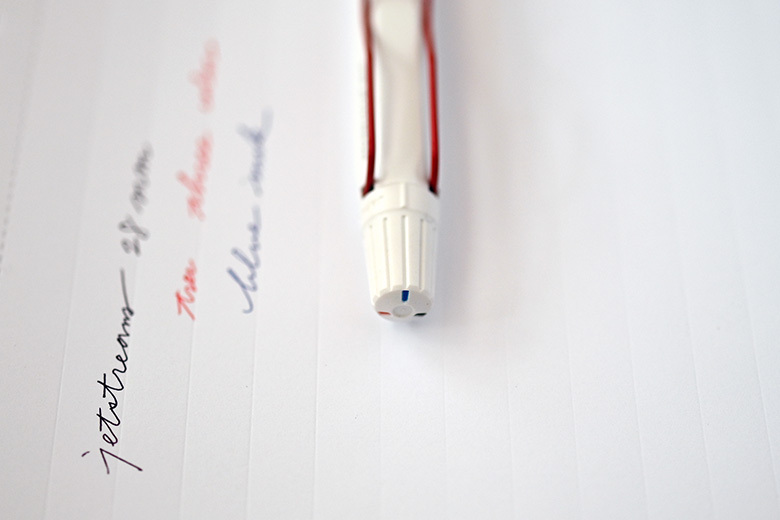 EDGE三用筆筆尖位置採特殊的偏心設計,感覺能提升下筆的精準度,更能發揮0.28極細筆芯的效果。