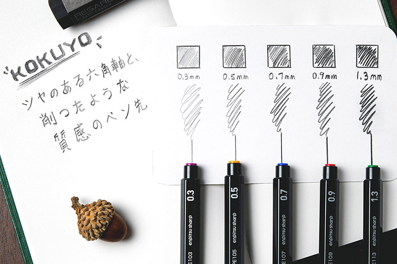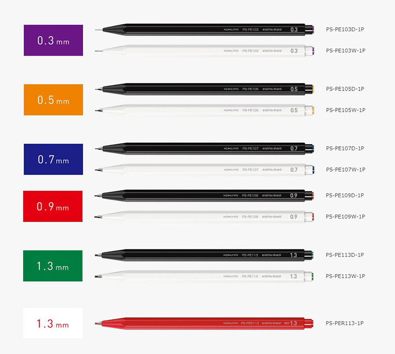 六角筆身有如剛削好鉛筆般的尖筆頭設計,添加筆芯直接放入後端即可,不需開蓋,5種粗細選擇。