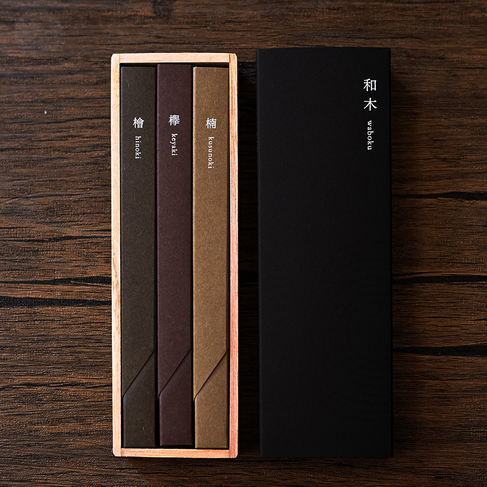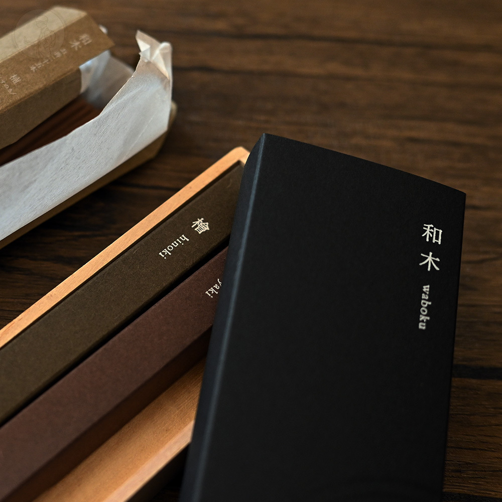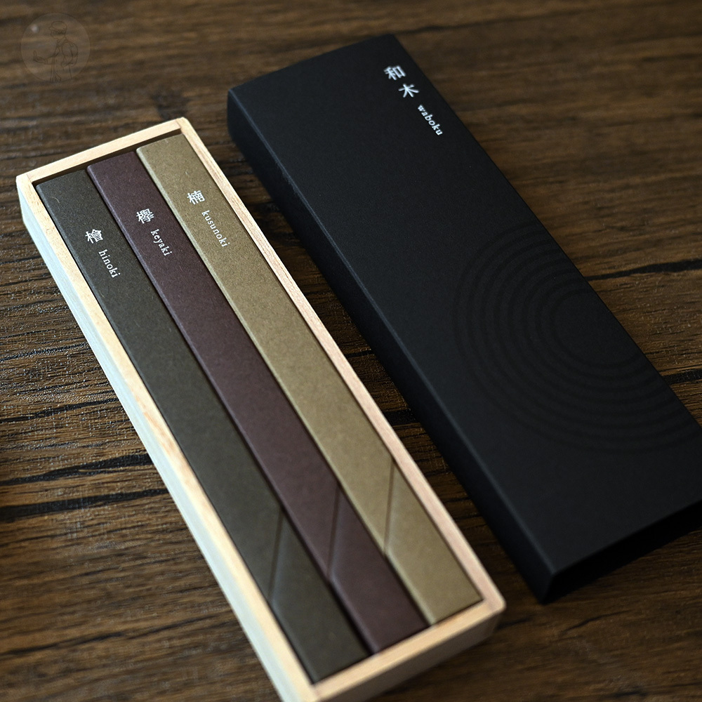 和木為散發著日本木頭香氣的線香,沉穩而清爽的香氣。包括檜木、櫸木、楠木三種香味。