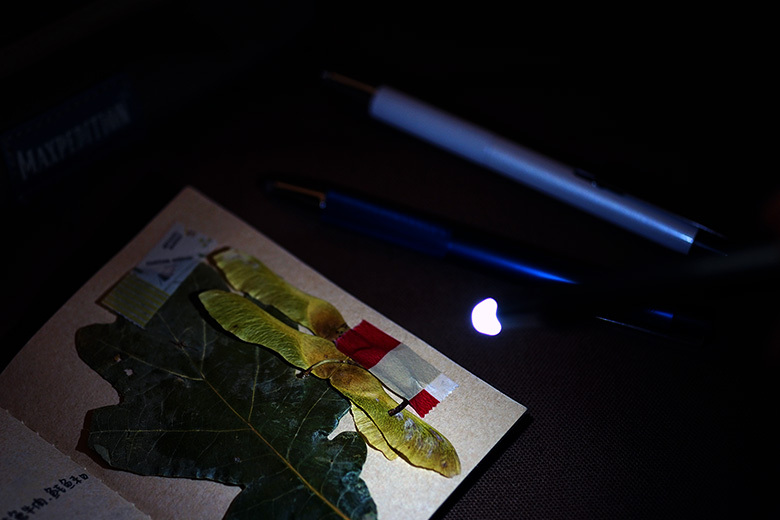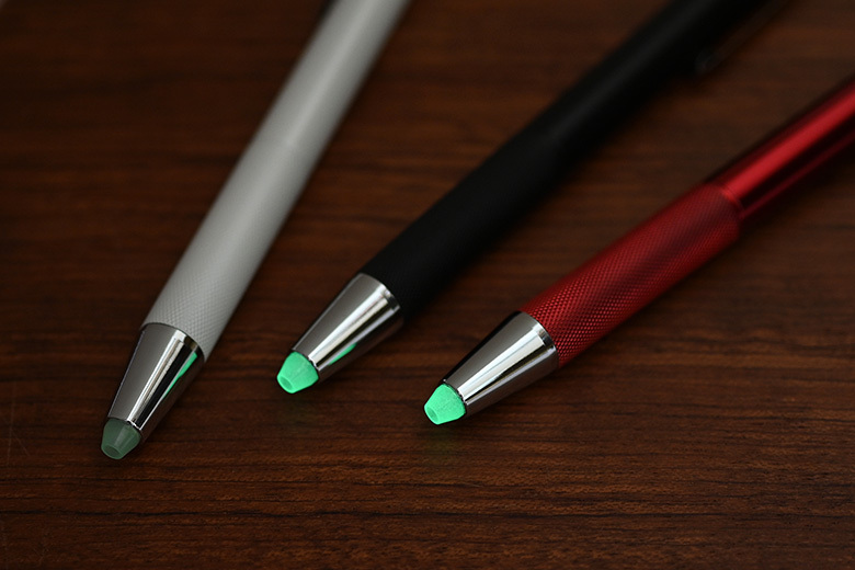 可於光線不佳下書寫,ALPHA版新增不刺眼的紅燈款,前端及按壓處有螢光蓄光,於暗處較好找尋。