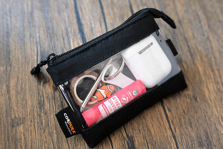 採用美國知名高強度耐磨尼龍布料CORDURA製成,透明視窗能一覽無遺收納內容物品。