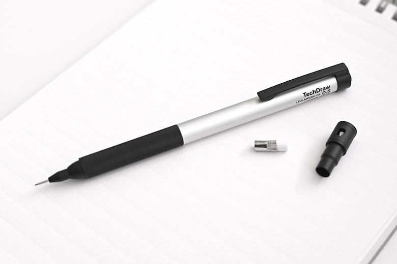 拿筆時能較明顯的感受到重心靠前,重心配置相當舒適,整體霧面設計,有0.5 / 0.3二種粗細。