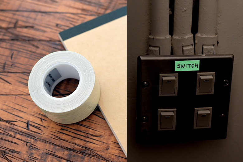 可裁剪貼於物品上,於黑暗中容易辨識、找尋,上方可用油性筆書寫做註記,也適於露營登山使用。