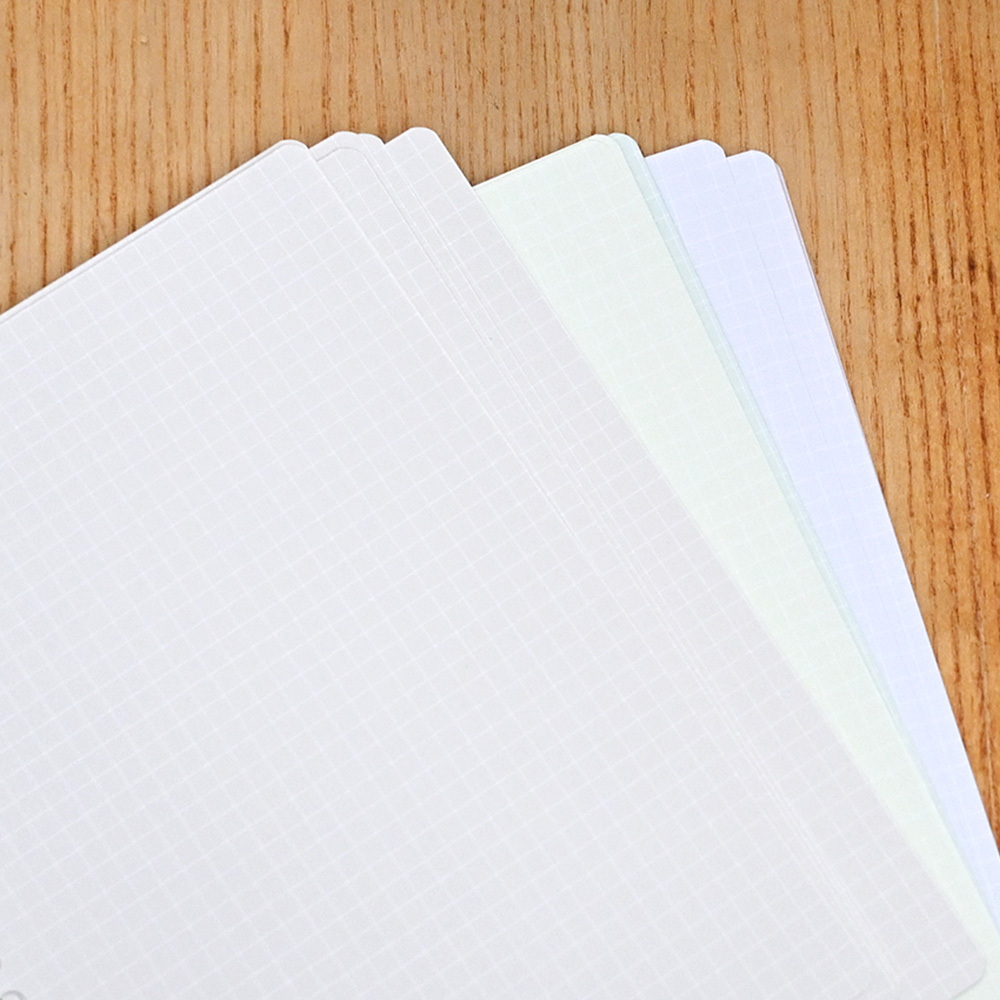 與記憶女神筆記本同樣紙張(畫用紙除外),除了一般書寫工具也適合鋼筆,具有優異的書寫表現。