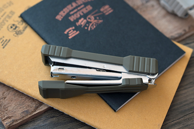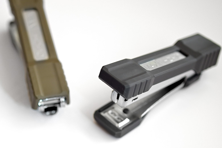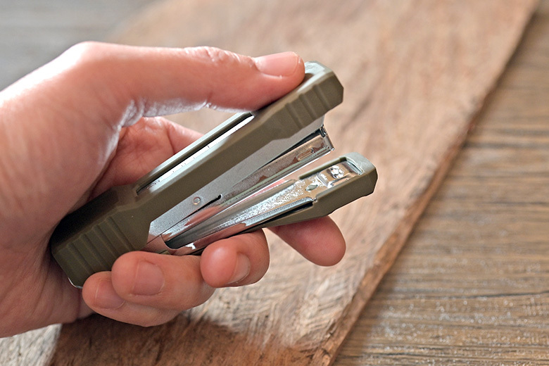 外殻包覆著TPE彈性材質,具有較為舒適的握感,能減少壓釘書機的反饋感。