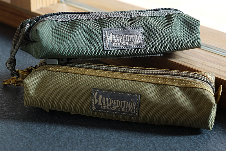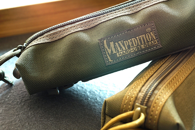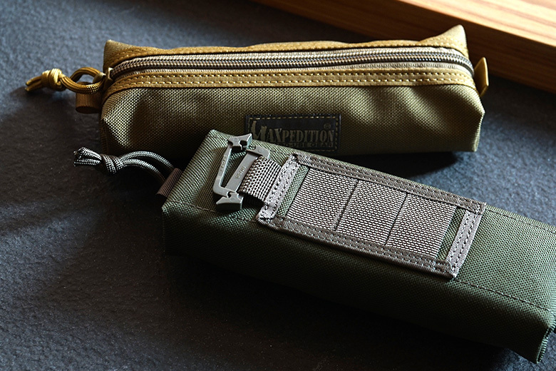使用耐磨、防水的軍規布料製成,可收納小物或是當做筆袋使用。背面有扣具設計。