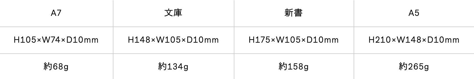 紙質適合鋼筆書寫,有多種內頁:橫線、空白、方格、框框、點點,四種尺寸:A5、新書、文庫、A7。