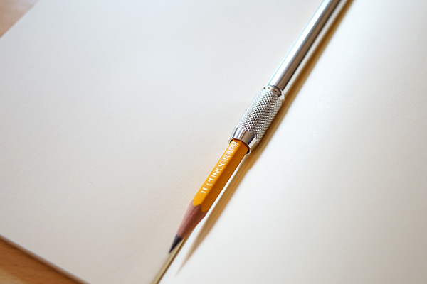重量較輕,因此套上鉛筆之後並不會增加太多重量。固定鉛筆的夾頭採用螺紋的方式旋緊以固定。