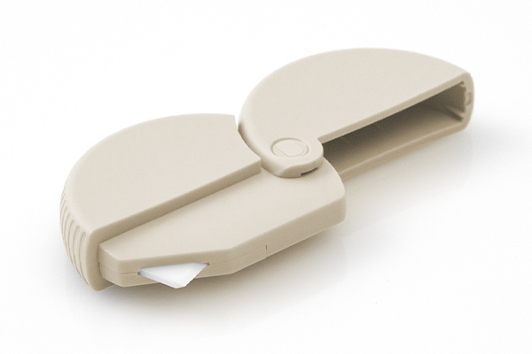 多用途的裁切刀,輕盈小巧的圓形設計,180 度展開即可使用,採用乳白色的陶瓷刀片,鋒利又耐用!