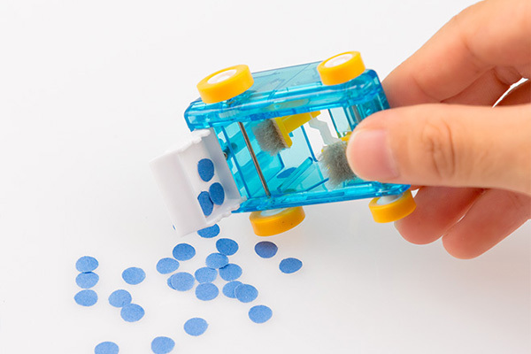 在桌面上推動小車、內裝的迷你掃把會以很有趣的方式快速撥動、把小屑屑掃進車內,是款療癒兼實用的小玩意兒。
