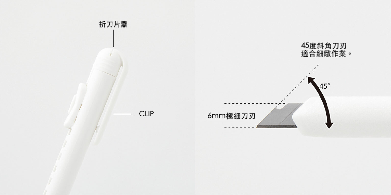 美工刀+筆刀的合體,一方面免去蓋子的麻煩、還可折刀片以保持刀刃銳利。