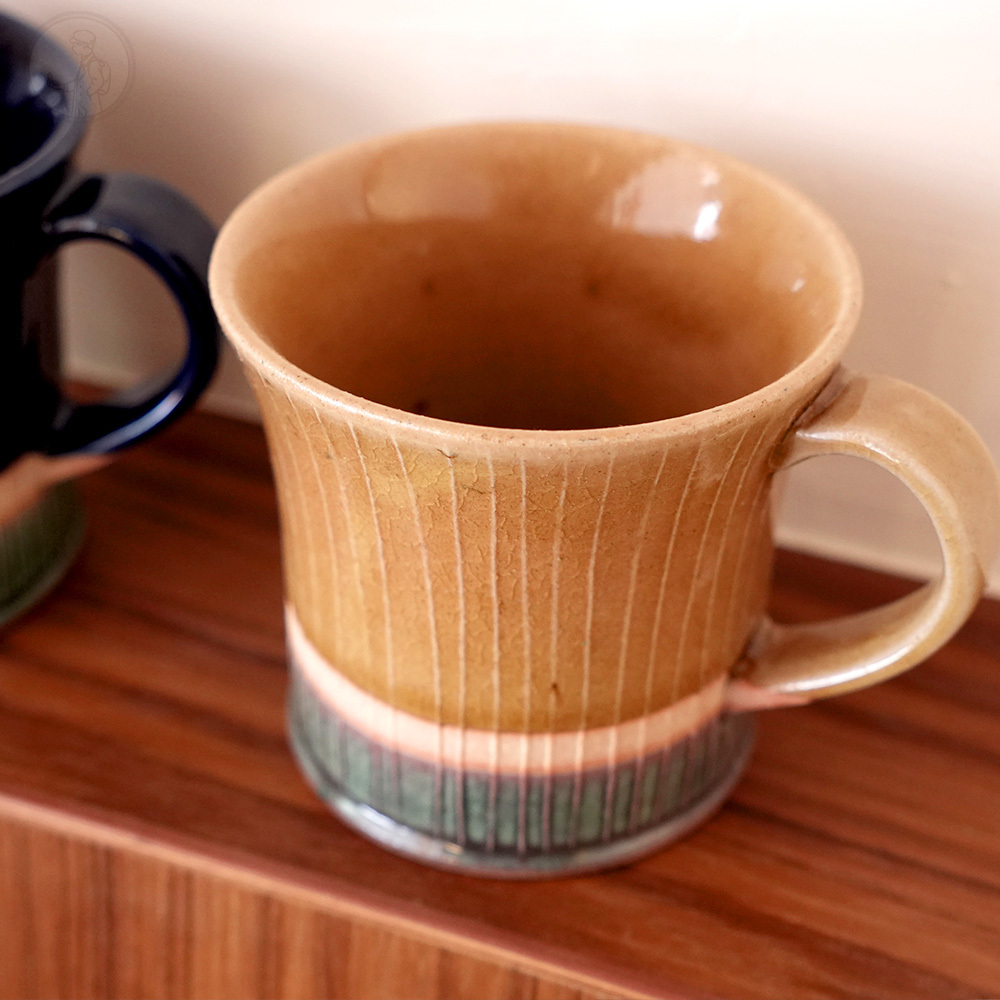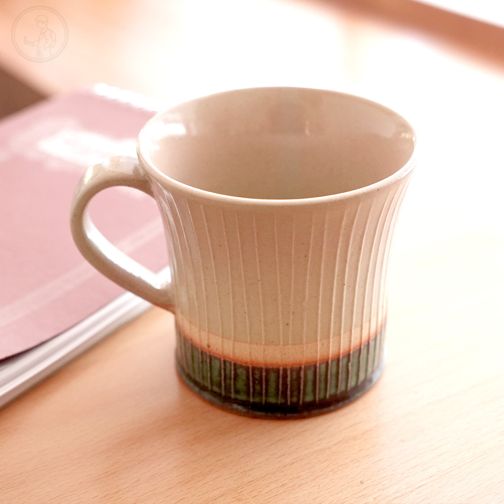 三層顏色的搭配簡單的線條,偏薄的杯身,反口設計易於就口,中等容量適合喝茶、咖啡。