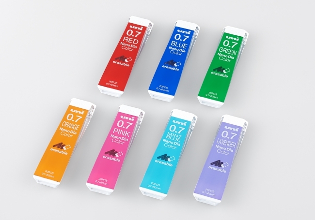 可以擦拭乾淨的彩色自動鉛筆筆芯是市面上少見的產品,0.7的粗細相當適中,寫字或畫畫皆宜,不妨在不同支筆中放入不同顏色吧,就有不用削的色鉛筆可以用囉!