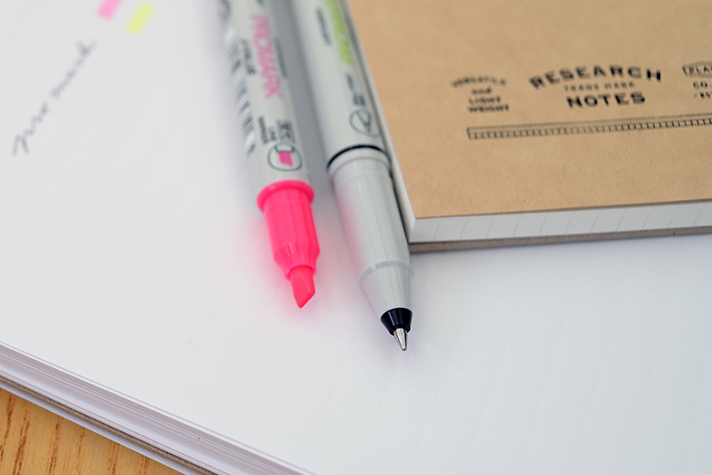 顏色鮮明的螢光筆搭配書寫不暈染的油性原子筆,只要轉過來就可切換原子筆、螢光筆