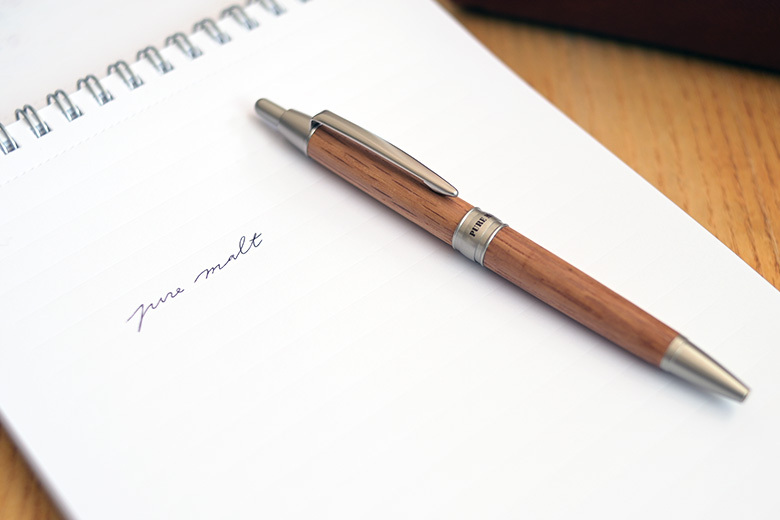 釀造威士忌的橡木桶在到達使用年限退役之後,將樽材再利用、製造出PURE MALT系列筆款。透著隱隱光澤的木色與霧銀的金屬間搭配之下,有種成熟的韻味。