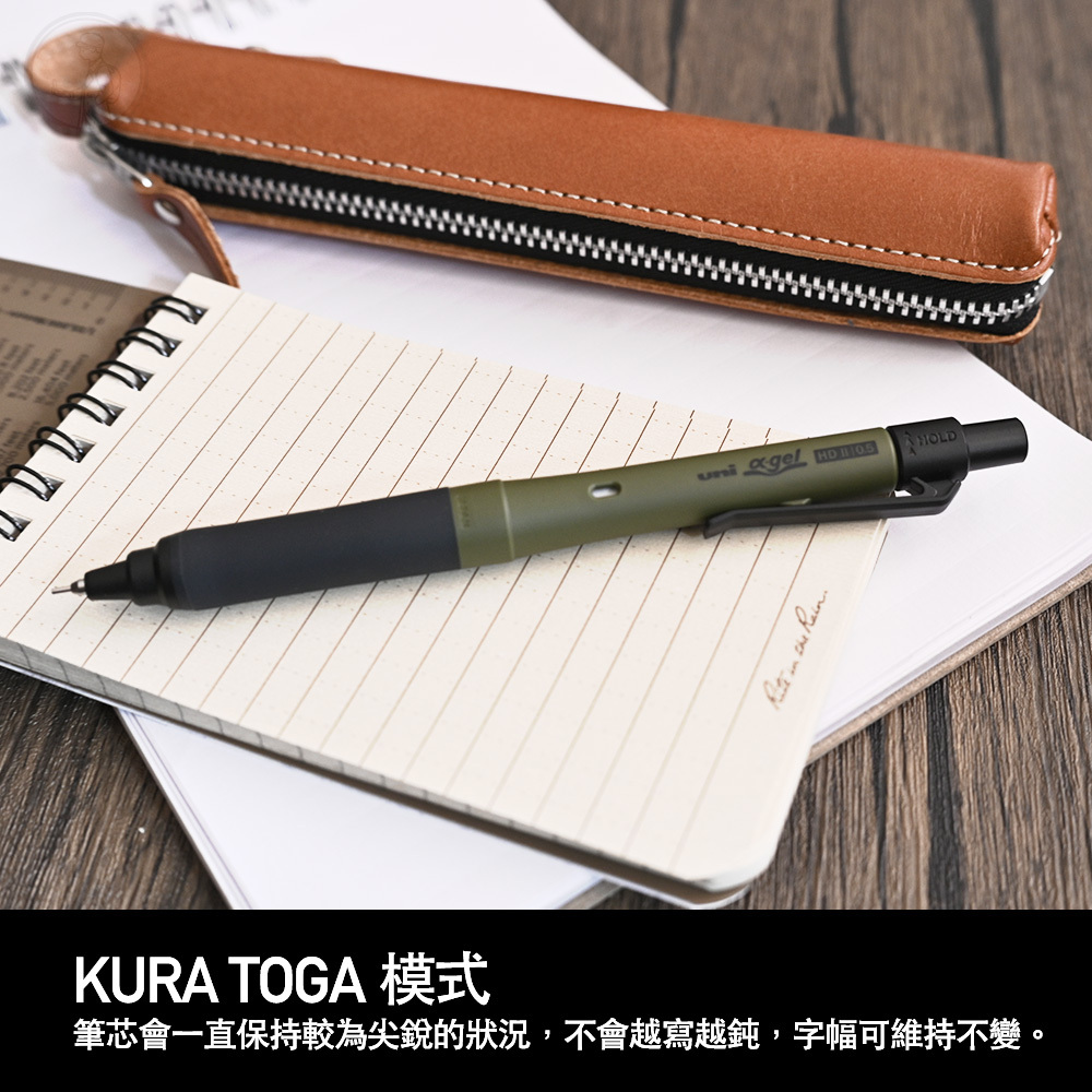 具有KURA TOGA模式,筆芯會一直保持較為尖銳的狀況,討厭字越寫越粗的人,就會覺得此功能相當實用。