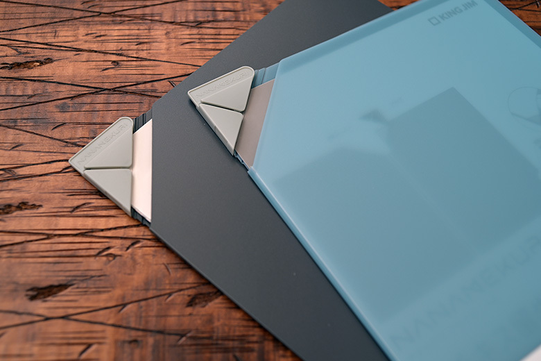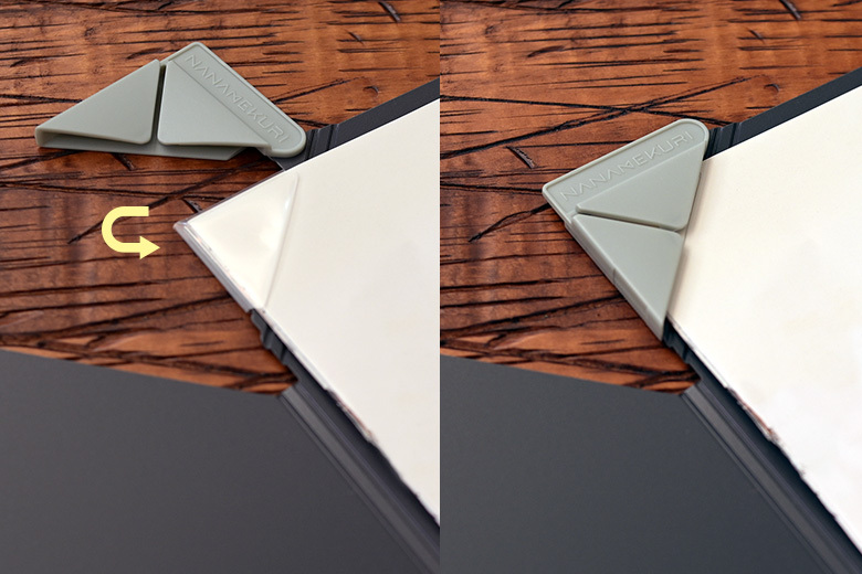 左上角的三角形夾固定文件,且可連同文件翻頁過去,就能直接翻閱書寫文件