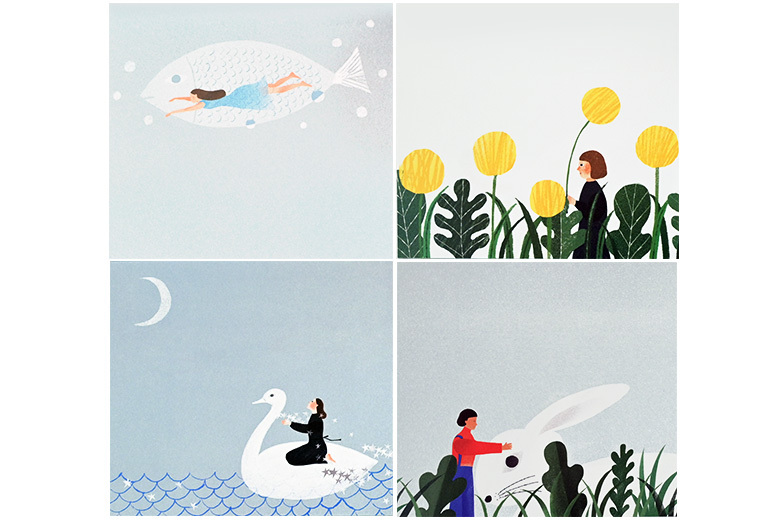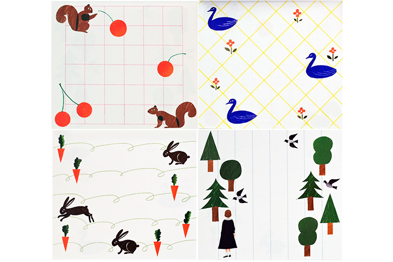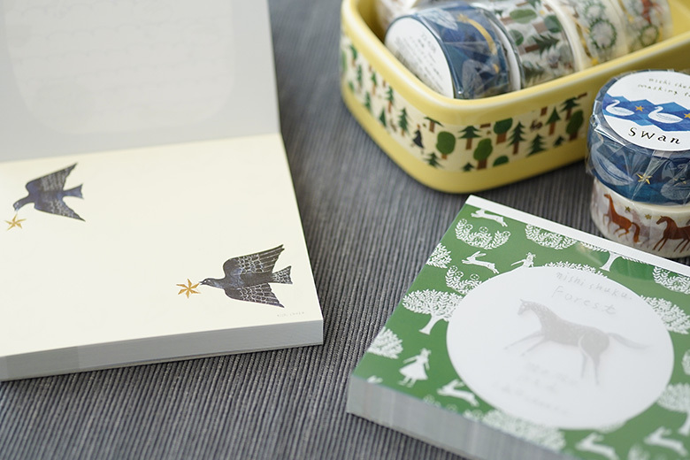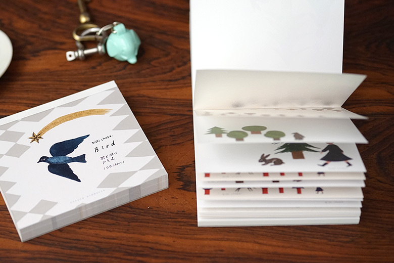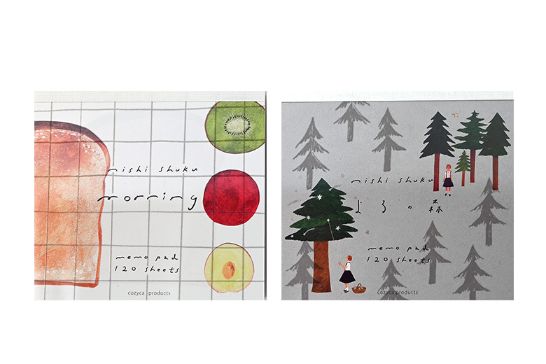 由京都文具製造商 表現社所生產的一系列插畫家作品,便條紙的印刷色彩豔麗、飽和,一本內有四種圖案各30張,共100張。