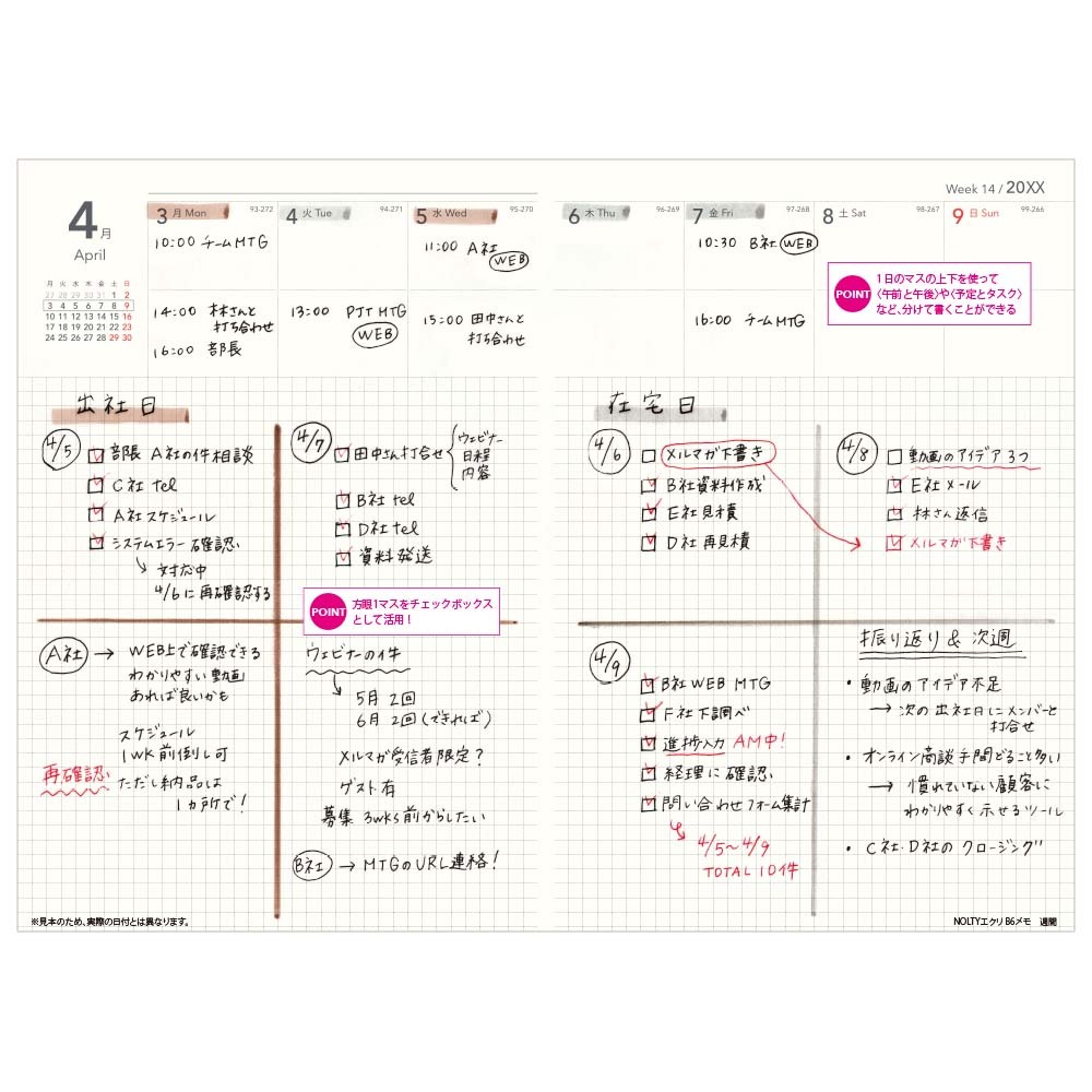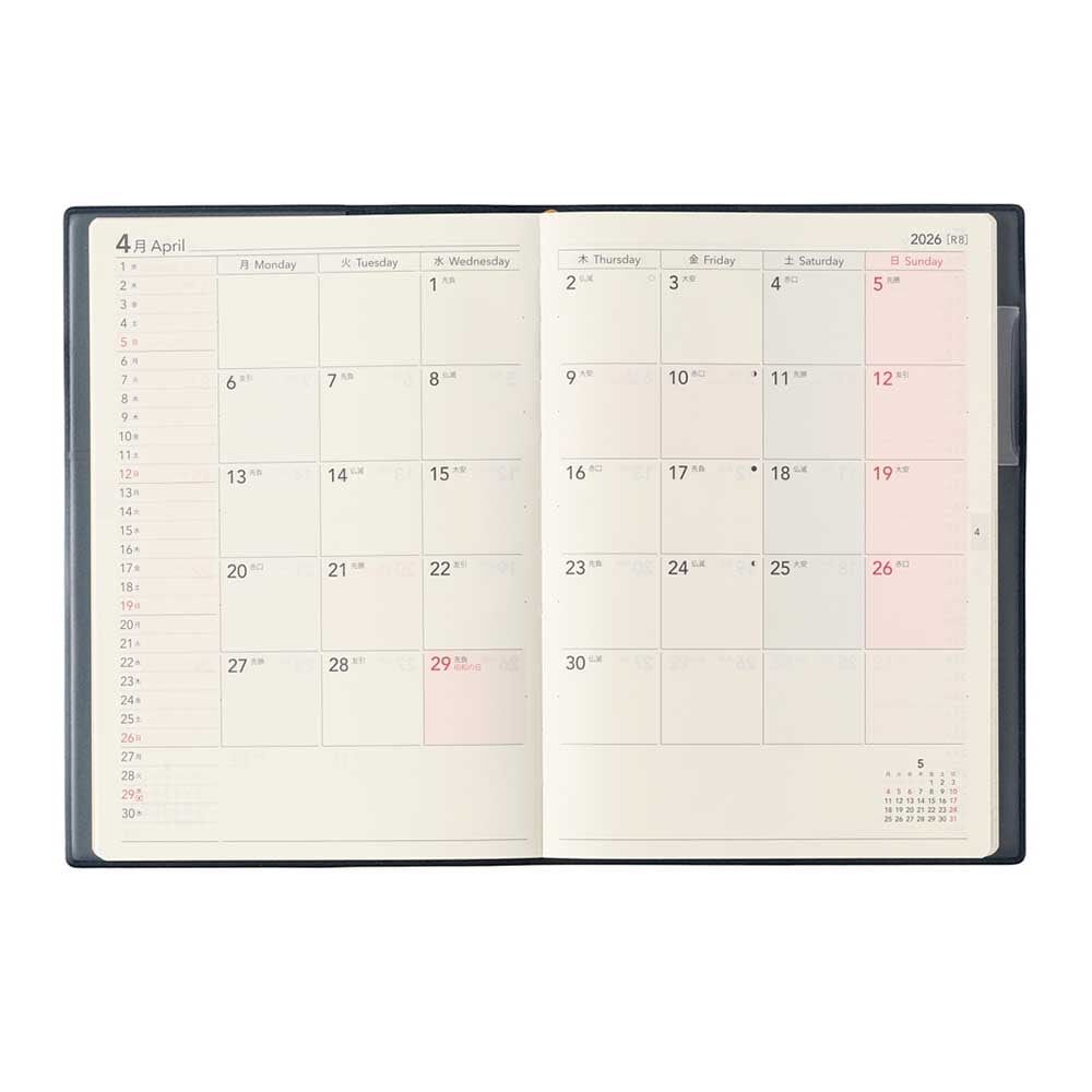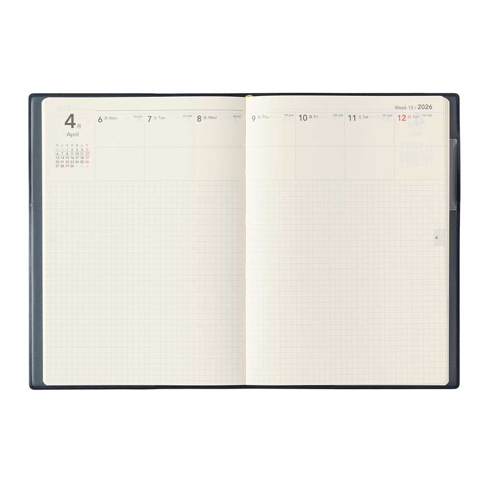 尺寸為好攜帶、記事量也很充足的B6,每週大量的自由方格頁,是我們很喜歡的格式!