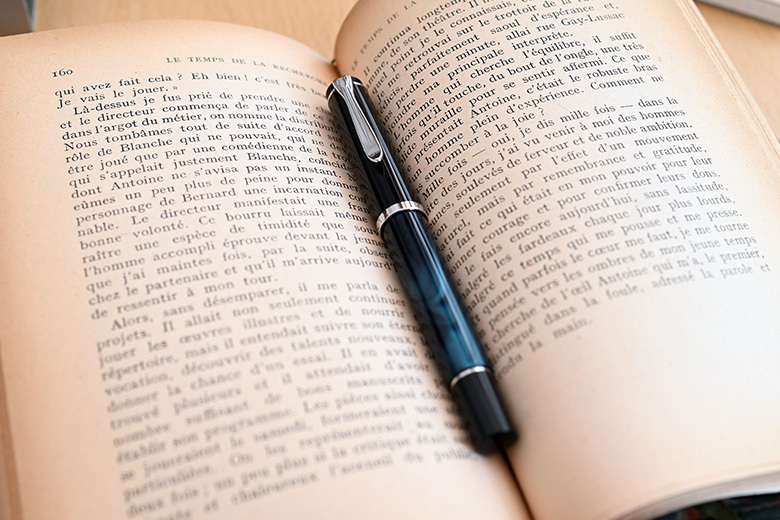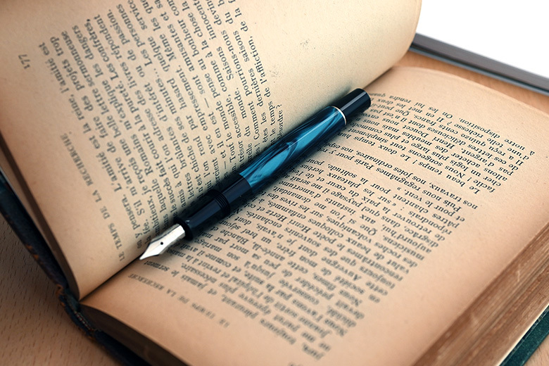 獨特的藍綠大理石紋筆桿,活塞上墨、書寫流暢。