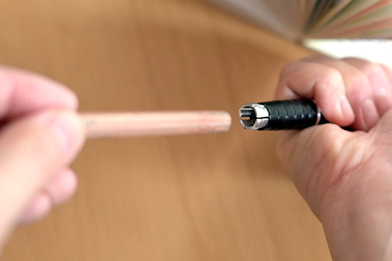 筆尾壓一下再放入鉛筆,比起旋轉式的操作更快速!