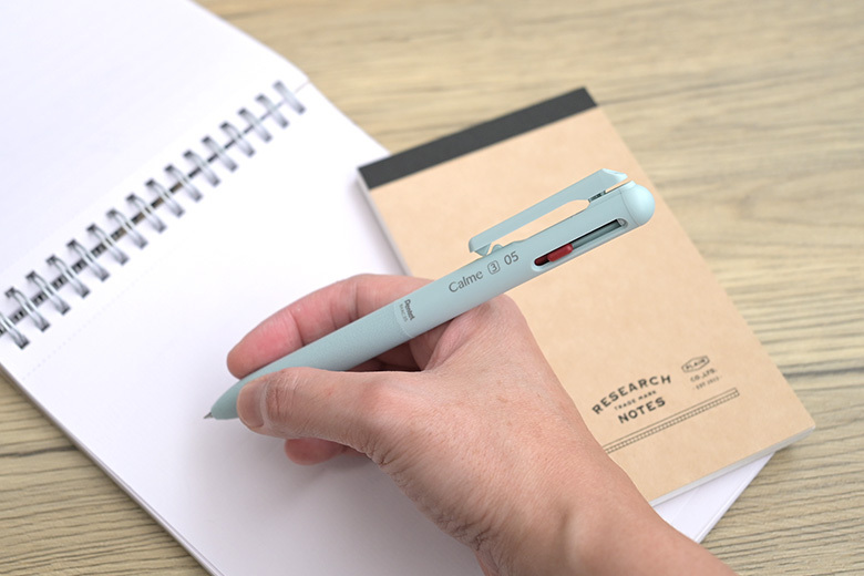 好寫的輕油筆芯,防滑握位類似相機把手的質感相當舒適。