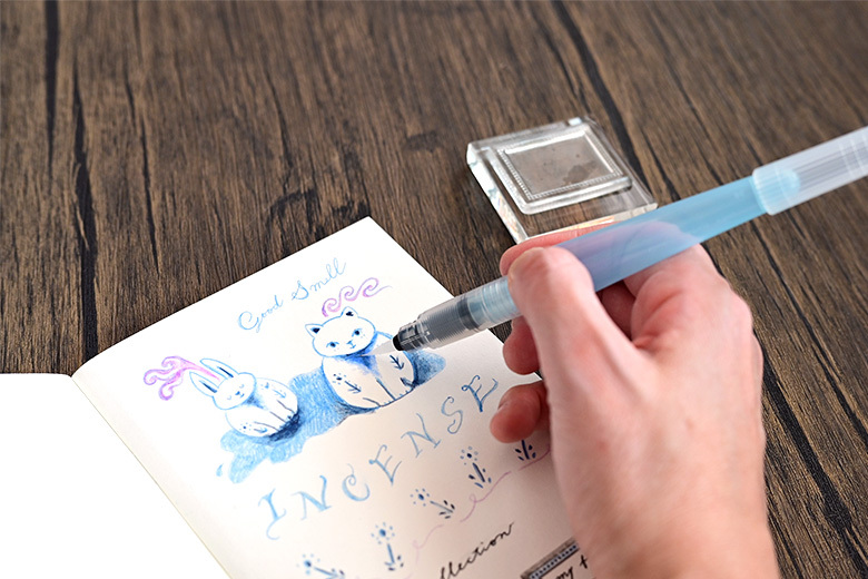 可搭配水溶性畫材,如水溶性色鉛筆、水彩顏料使用,方便攜帶、使用便利,旅行途中時可讓手帳內容變得更多彩豐富!